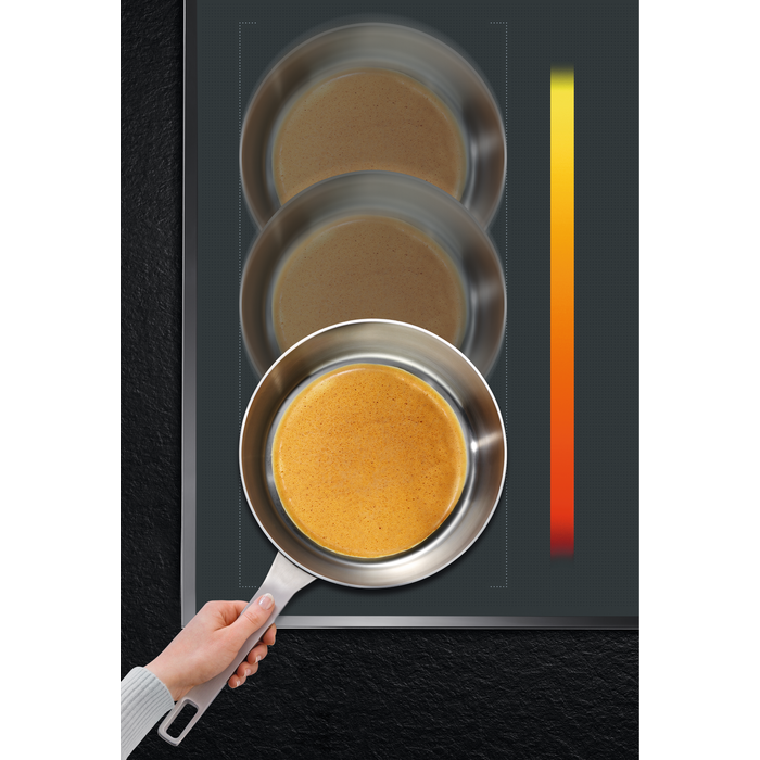 Pri smažení na indukčnom varnom paneli 7000 SenseFry® dosiahnete dokonalú chuť a textúru. Stačí si vybrať jedlo a želaný výsledok. Už žiadne odhadovanie, kedy má panvica alebo olej tú správnu teplotu. Už žiadne úpravy ohrevu.