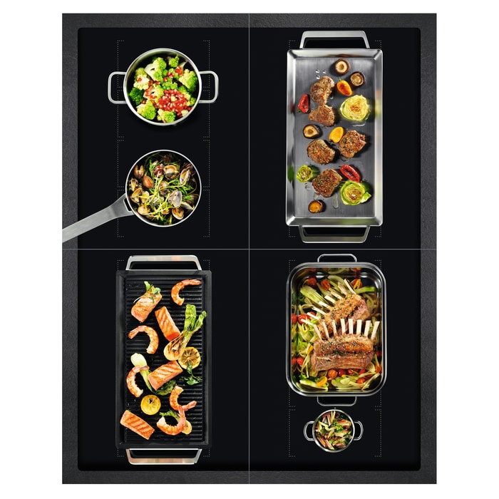 S indukčným varným panelom 6000 FlexiBridge® si môžete prispôsobiť svoju vlastnú varnú oblasť tak, že spojíte a budete ovládať až 4 segmenty. To je ideálne, ak používate veľké alebo dlhé panvice, prípadne ak súčasne pripravujete veľa jedál, ktoré si vyžadujú priestor navyše.