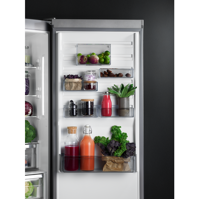 Kvalita surovín je v chladničke Cooling 360° chránená v ktoromkoľvek mieste. Celková cirkulácia vzduchu rozprúdi studený vzduch v každom kúte cez účinné vetracie otvory. Inovatívna zadná časť z pravého antikora rýchlo obnovuje teplotu po každom otvorení dvierok. Aby nakúpené potraviny zostali stále rovnako lahodné.