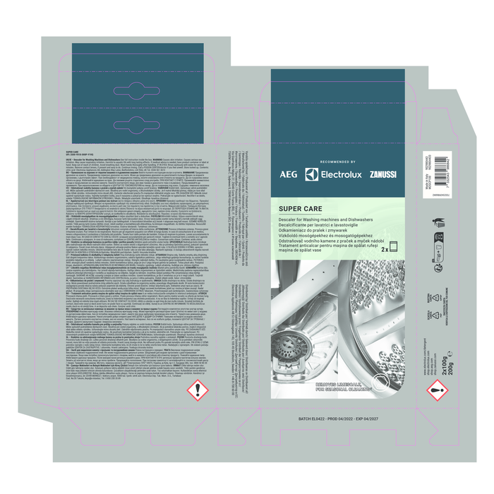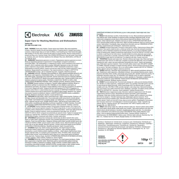Dlhotrvajúci a výkonný. Odvápňovač Super Care pomáha udržiavať optimálny výkon práčok a umývačiek riadu tým, že odstraňuje usadzovanie vodného kameňa a pomáha mu predchádzať. Odstraňuje tiež zápach a udržiava vaše zariadenie svieže.