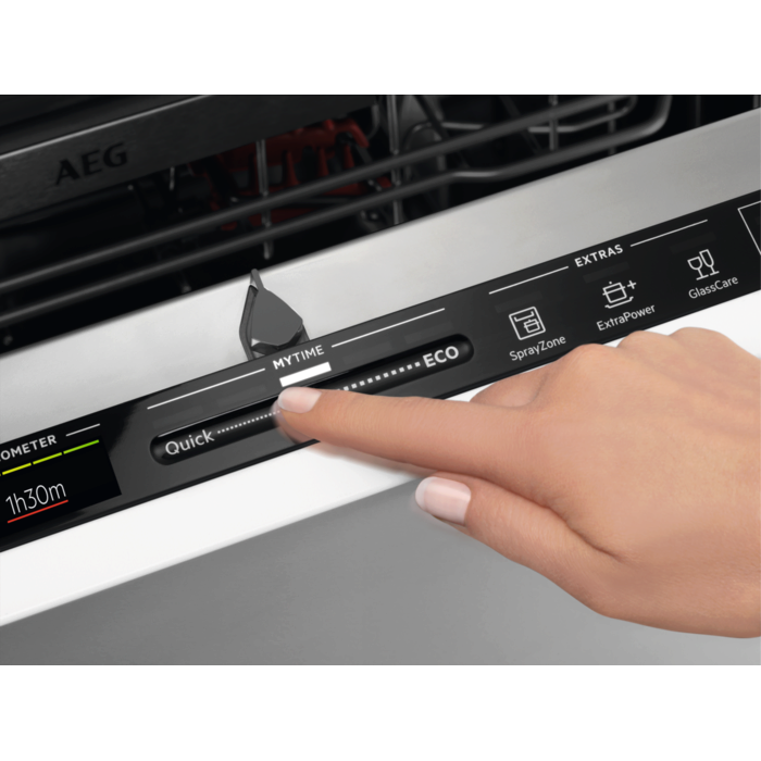 Ovládanie QuickSelect predstavuje jednoduchý spôsob, ako upraviť a spustiť umývací program. Posunutím prsta zvolíte dĺžku programu a v prípade potreby dotykom pridáte rôzne voliteľné funkcie. Zvyšok prenechajte umývačke. Žiarivo čistý riad vtedy, keď ho potrebujete.