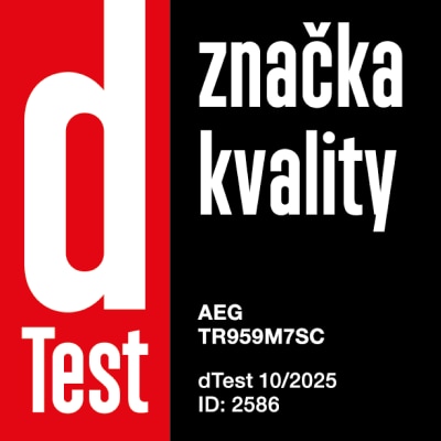 Spotrebiteľský časopis dTest otestoval sušičky bielizne a modelu AEG TR959M7SC udelil známku kvality.