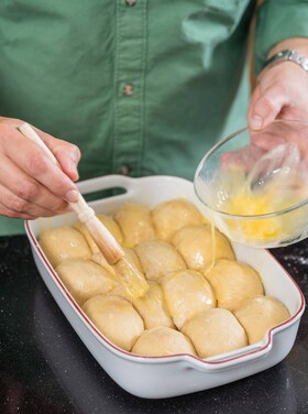 Z múky a ostatných prísad vypracujeme hladké nelepivé cesto a necháme ho vykysnúť, najlepšie zakryté v potravinárskej fólii pri programe Kysnutie v rúre. Tým sa zabezpečí, že cesto bude vláčne a čo najviac vykysnuté.