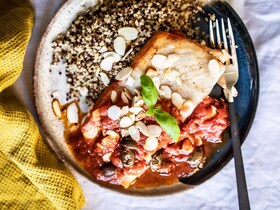 - Tip 2: K tomuto receptu sa hodí snáď každá príloha. Vďaka paradajkovej omáčke sú vhodné aj suché prílohy, ako je quinoa (na fotkách), kuskus, bulgur, ryža, ale aj zemiaky...