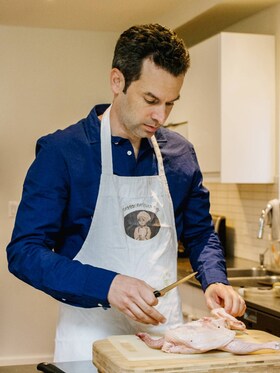 1 farmárske kurča (heirloom fryer*), tuk, soľ a korenie, múka